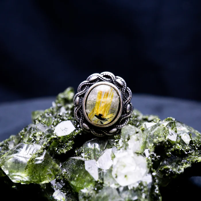 Floral Pattern Golden Rutile Quartz Ring