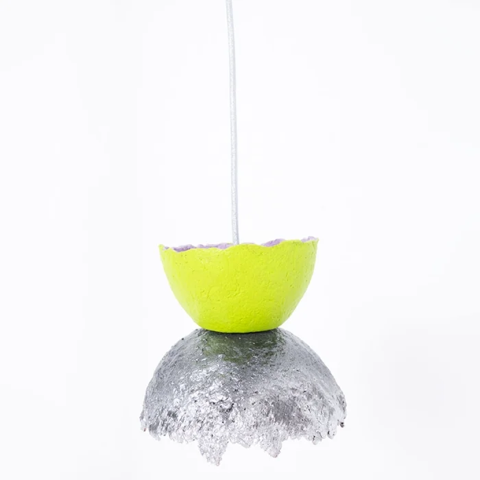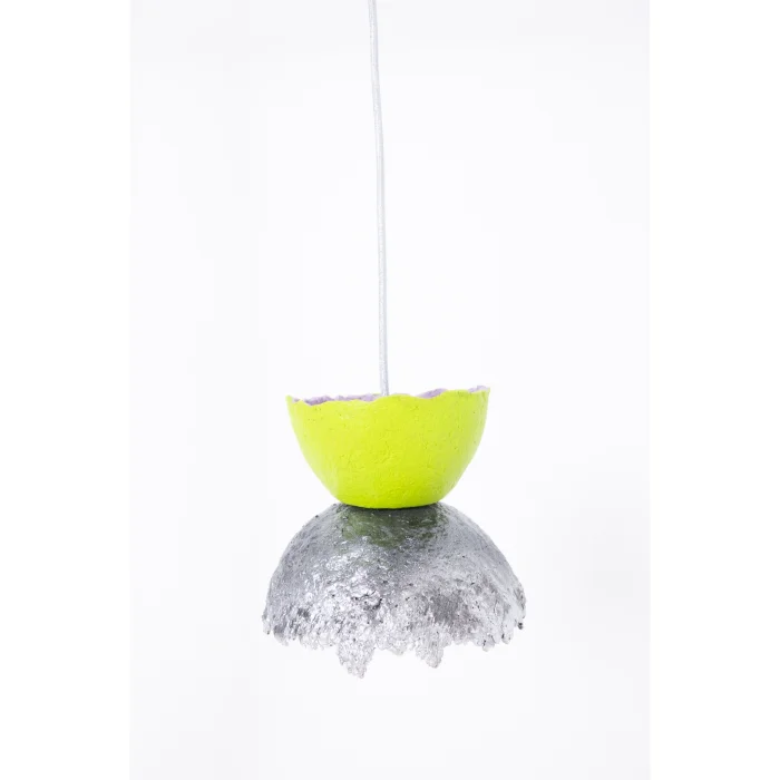 are carefully handcrafted with NEST lamp, recycled paper, egg cartons, natural pigments, and water-based paints. Its lightweight yet durable construction makes it an eco-friendly choice, and its manufacturing process offers an eco-conscious design in every detail.