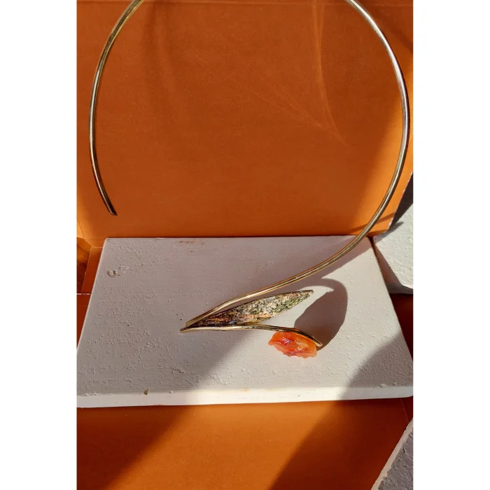 Its design is simple, but splendid and brave.This product is made of brass and carnelian stone, metal painting technique is used. The unique design and handmade production makes this product special .Our jewelries are shipped in Sava packaging. As the shape of natural stones are not the same, there can be slight dıfferences between the product image and the product itself.