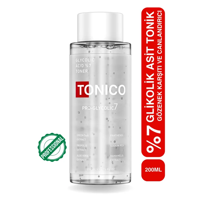 TONICO PRO-GLYCOLIC7 is a powerful and effective toner formula that perfectly fits into your skin care routine. Its natural and active ingredients deeply moisturize, soothe, renew and protect your skin. With its pore tightening and anti-blemish effects, it helps to even out skin tone, reduce fine lines and smooth skin texture. The prominent ingredients in this toner are;