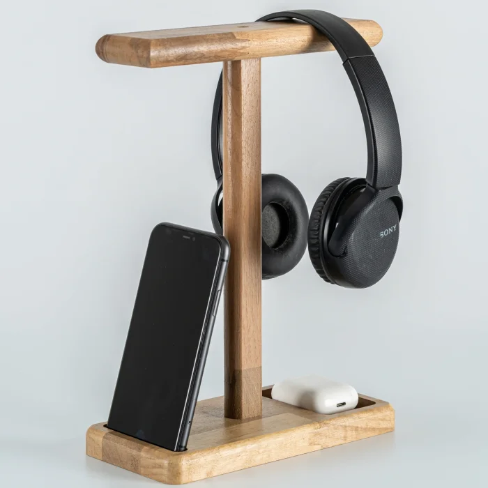 Product Dimensions: 20x9.5x27.7cm Length: 20cm Width: 9.5cm Height: 27.7cm Space to Put Phone: 1.2cm Compatible with any size headphone model. You can also use it as a phone holder. You can also use it to display your accessories such as watches and bracelets. It is sent disassembled in 3 pieces. The screws are included with the product and the holes are drilled on the top of the product for easy installation. All of our products are produced in our wood workshops in Izmir. Since it is produced entirely from natural wood, there may be color and pattern differences between the products. The product is made of walnut wood, water-based varnish is used, which is harmless to health. You can use it for a long time with peace of mind. The varnish made to protect the products is handcrafted by our certified teachers in the art workshop.