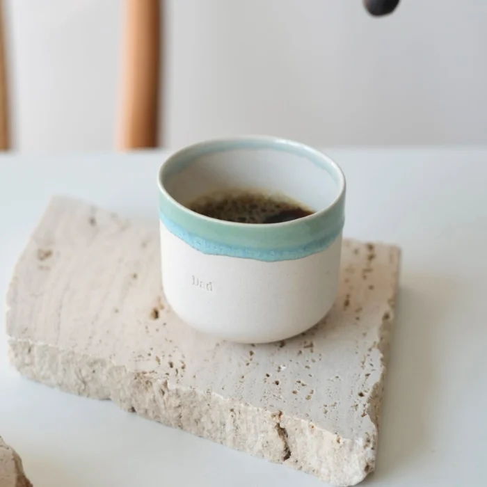 It is handmade using stoneware mud. Dishwasher safe, microwaveable.
