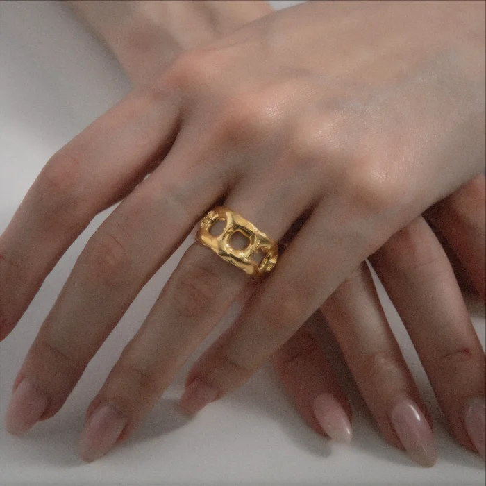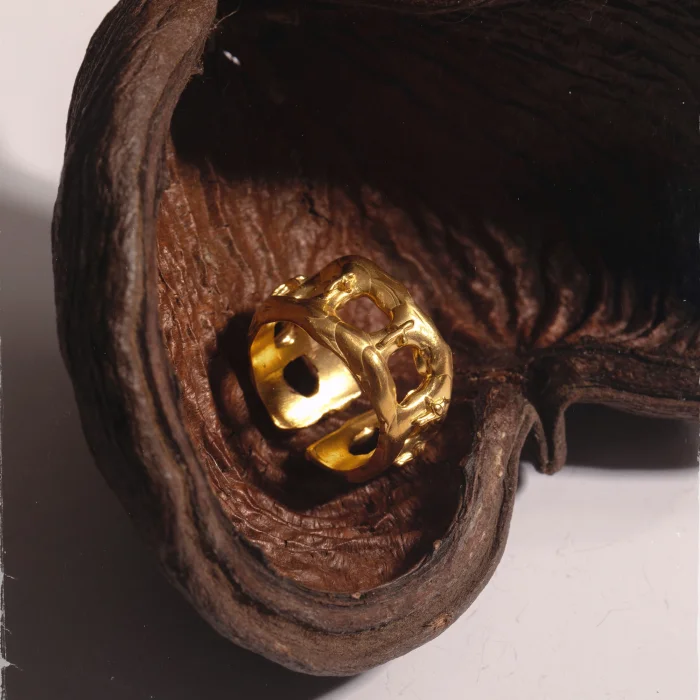 Tyche Ring is made with recycled 925 sterling silver 24ct gold plated.