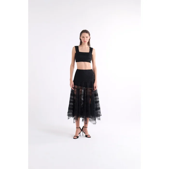 It can be easily combined with high-waisted trousers, skirts or suits.