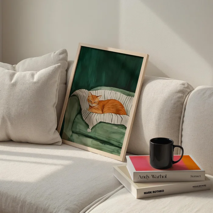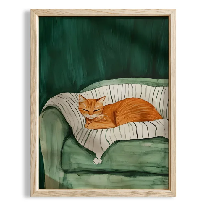 Product: Rest With Cat I - Green Sofa Wooden Framed Print