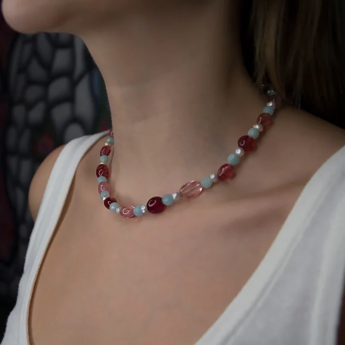 is designed with quartz, amazonite and pearl natural stones.