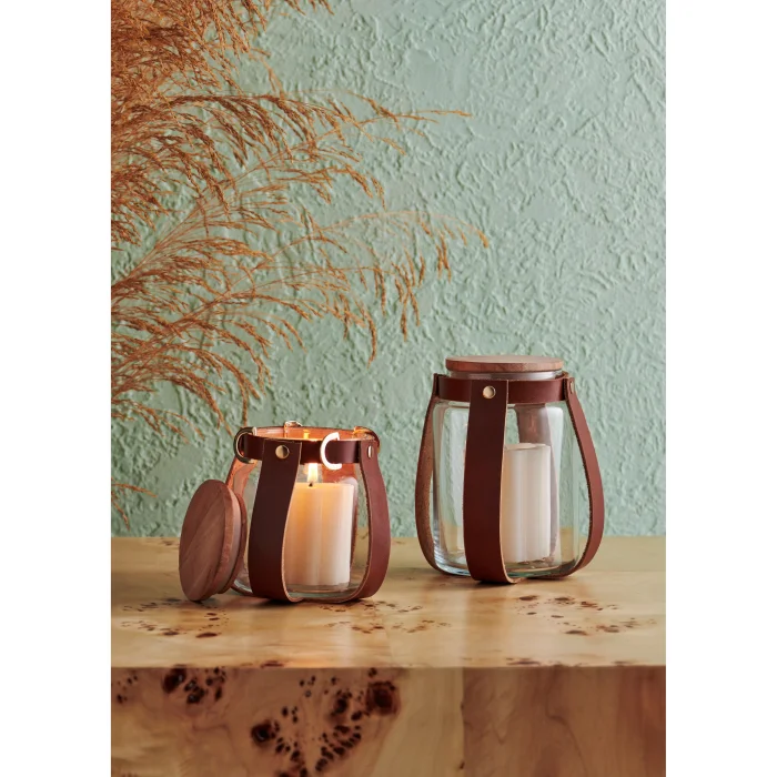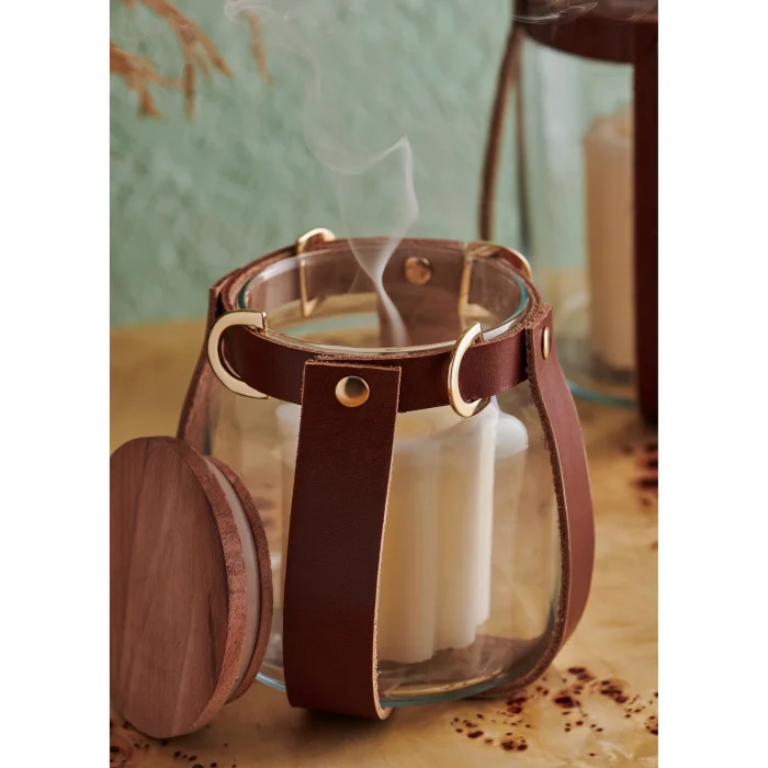General Information: - Material: High quality glass and leather coating - Dimensions: 14 cm - 10 cm - Color Options: Brown - Weight: - - Production Location: Türkiye - Usage Areas: Kitchen, bathroom, living room, office Design and Material: - Leather Covering: The outer surface of the jar is covered with high quality and durable leather. The leather-covered jar candle holder adds a sophisticated look and tactile feel. - Glass: The main body of the jar is made of durable and clear glass that can come into contact with food. Technicial Specifications: - Cleaning: The glass part can be washed in the dishwasher. The leather covering part should be cleaned by wiping it with a damp cloth. Sustainability: - Environmentally Friendly: Leather and glass materials are sourced from sustainable and environmentally friendly sources. - Production Process: It is produced with environmentally friendly production methods, thus environmental impacts are minimized. Guarantee: - Warranty: 1 year manufacturer's warranty - Return and Exchange: Possibility of unconditional return and exchange within 15 days Highlighted Features: - Aesthetic Design: Elegant design compatible with modern and classic decoration styles. - Functional Use: Versatile use for the kitchen, bathroom, living room and office. - High Quality: Long-lasting use with durable materials and superior craftsmanship. Leather Covered Glass Jar candle holder brings elegance to every corner in your home. Experience the perfect harmony of natural materials and handcraftsmanship, and make room for this special product that combines both aesthetics and functionality.