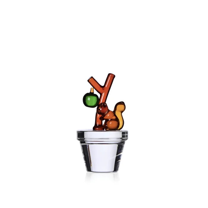 Decorative glass object with colorful squirrel figures from the Fruits and Flowers collection. Product Details:. Material: Borosilicate Glass. Size: Height: 10 cm. Production: Handmade and Flame Processed.. Product Care:. Dishwasher safe at low temperatures (40° recommended). It is suitable for food consumption.
