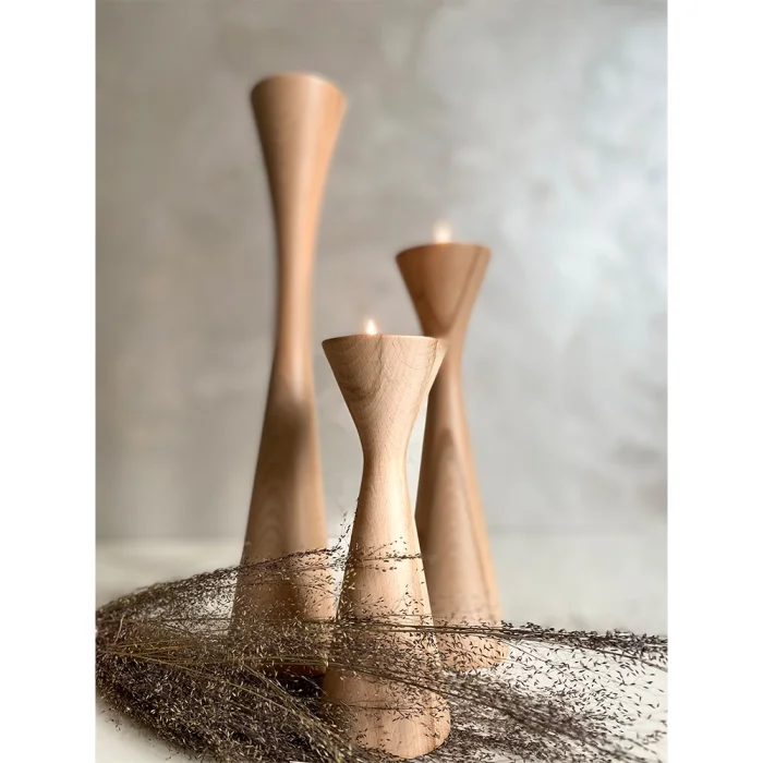 Glamour candle holder set is produced entirely by hand using solid wood.