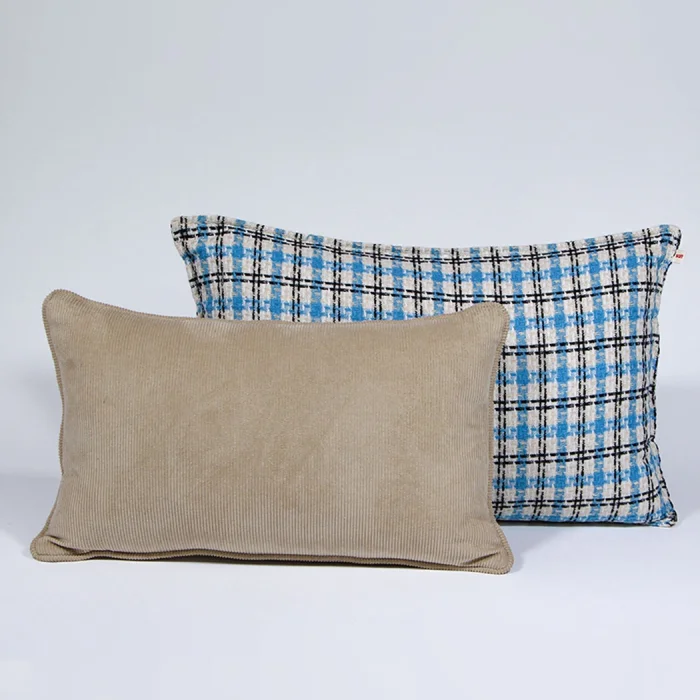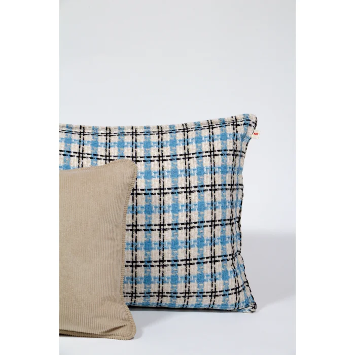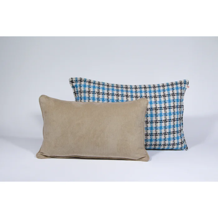 Product: Geometric & Ribbed Texture Cushion Set - Blue & Beige