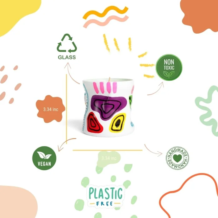 Container Material: Recycled glass containers – each hand-painted