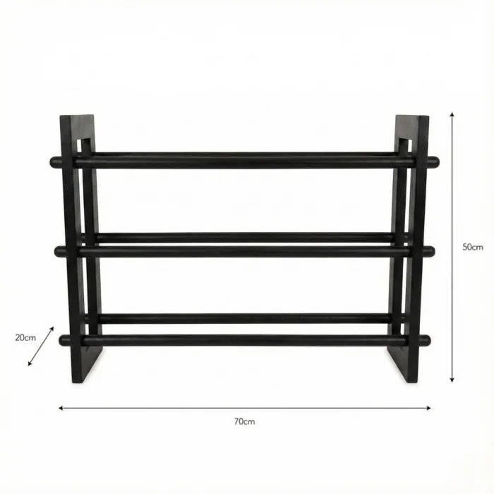 Meet this solid wood shoe rack that brings naturalness and elegance to the entrance of your home. Thanks to the three-layer shelf structure, you can store your shoes in an organized and accessible way. Its sturdy structure is made of high-quality natural wood and provides long-lasting use. Its minimalist and modern design fits perfectly into any decorating style. This wooden shoe rack is not only a storage solution but also a unique piece that will add an aesthetic touch to your home. Product Details Material: Solid beech wood Finishing: Natural oil Production : Handmade, by local artisans Color : Natural wood tone, walnut, black (You can contact us for your different color preferences.) Product Dimensions Height: 50 cm Width : 70 cm Depth : 20 cm Personalized Production: You can contact us for different size or color options. NOTE: Not suitable for outdoor uses. It should be protected from direct sunlight. Spilled liquid should be cleaned up with a dry cloth as soon as possible.