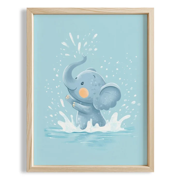 Product: Swimmer Elephant - Blue Background Children's Room Wooden Framed Wall Art