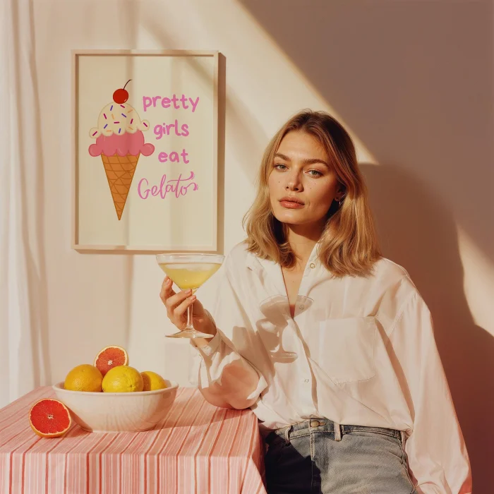 Product: Pretty Girls Eat Gelato Typography Kitchen Wall Art