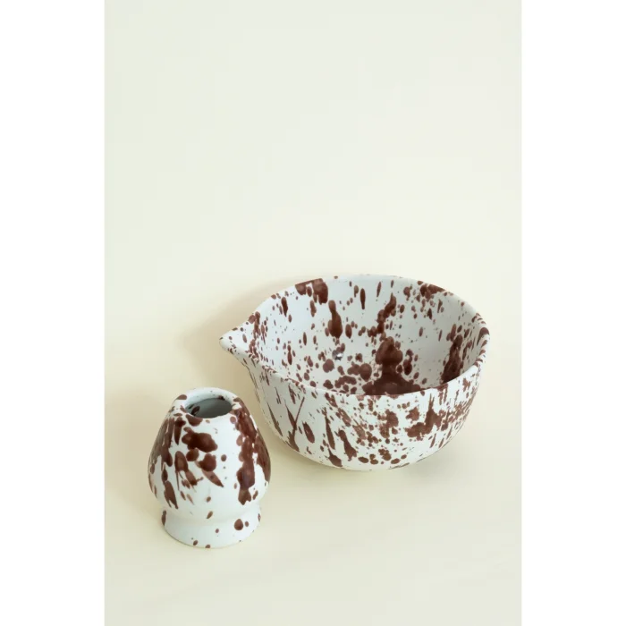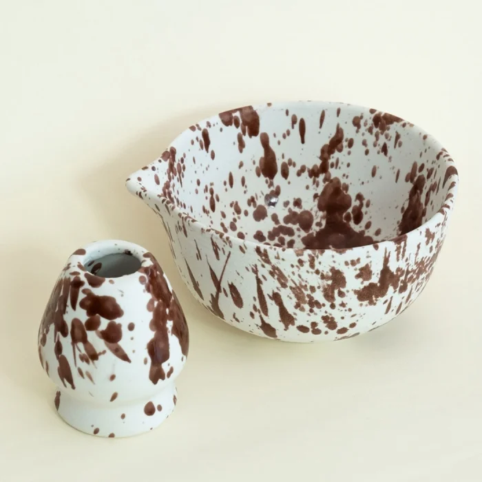 Product: Ceramic Glossy Speckled Matcha Bowl And Whiskey Holder Set