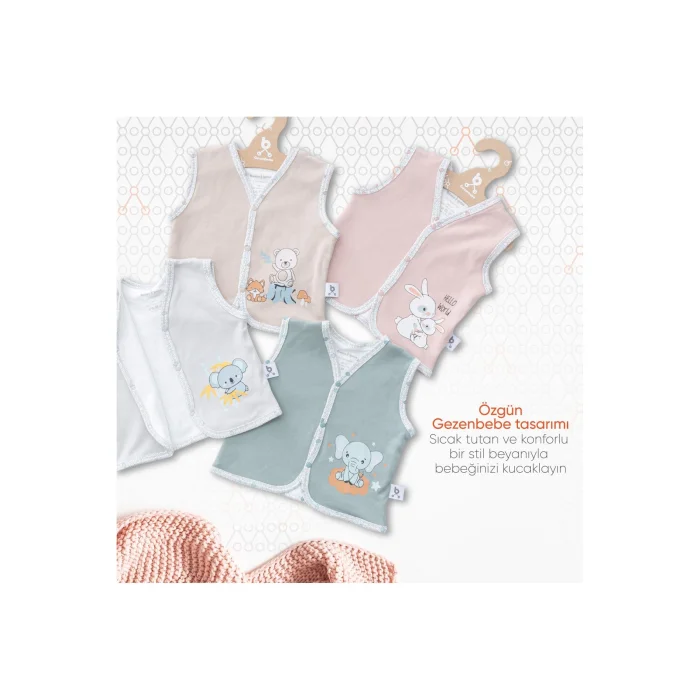 Product Description:Gezenbebe Hero Baby Vest: The Perfect Combination of Comfort and Style for Your Baby! Offering maximum comfort to your baby's delicate skin, this vest is an example of elegance with Gezenbebe's iconic patterns and Elephant, Koala, Teddy Bear and Rabbit mascots. Highlights:GEZENBEBE'S UNIQUE DESIGN: This is not just a baby vest; It is a style statement with Gezenbebe's original patterns. WARM & STYLISH: Cold days are warmer and more enjoyable with the Gezenbebe Hero Baby Vest. HIGH QUALITY COTTON: Prepared with 100% breathable cotton, this vest gives the gentlest touch to your baby's skin. UNIQUE PATTERN & CUTE MASCOTS: This unique design brightens up your baby's every moment. With our iconic mascots, it takes your baby's style one step further. UNISEX DESIGN: With its modern patterns, your baby is ready for any activity. NICKEL-FREE BUTTONS: Designed with nickel-free snap buttons for sensitive skin. QUALITY COMMITMENT: We are constantly improving by taking into account customer feedback and looking for excellence in every detail. Technical Details:Size Options: 3-6 months, 6-9 months, 9-12 months, 12-18 months. Color Options: Bunny, Elephant, Koala, Teddy (Organic). Please check the size chart before ordering. With its Gezenbebe quality, Hero Baby Vest always prioritizes your baby's comfort and style. When choosing the best for your baby, experience the difference of Gezenbebe!