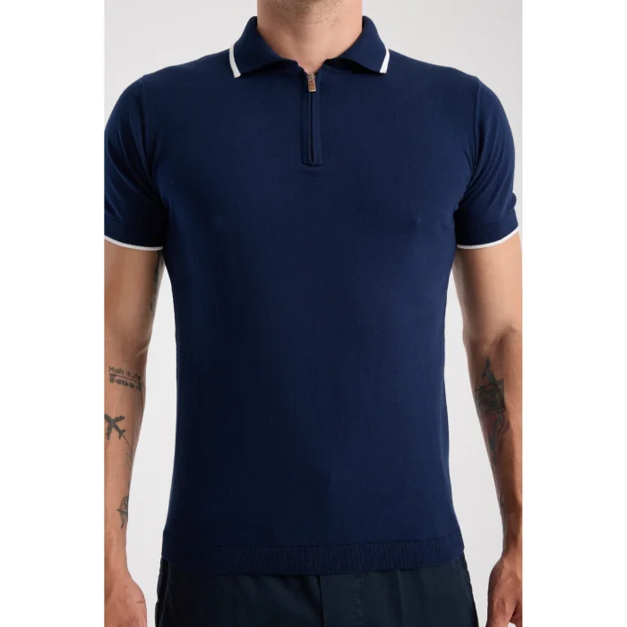 Product: 100% Cotton Half-zip Knit T-shirt With Contrast Stripe Detail