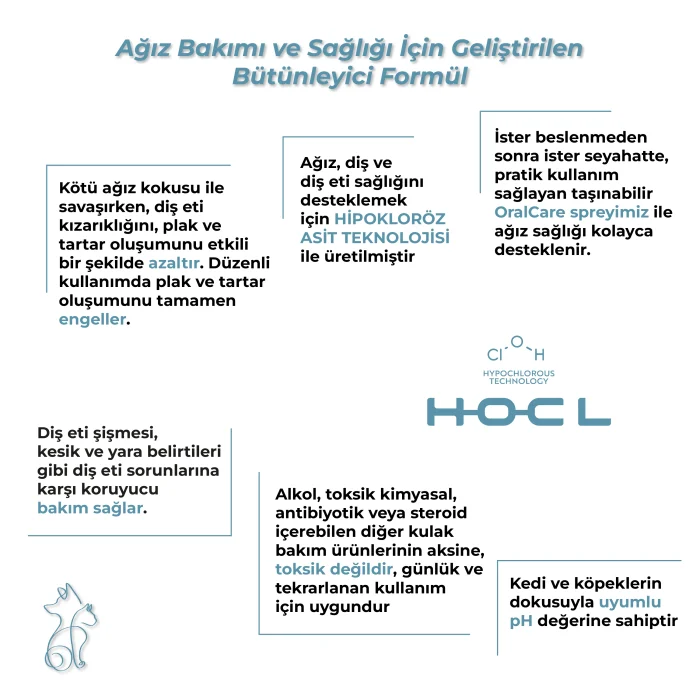 The hypochlorous acid it contains is a physiological molecule that is naturally produced by white blood cells in all mammals and is effective in our body by our cells. It helps reduce plaque and tartar while eliminating bad odor caused by oral ailments. When used regularly, it helps prevent tartar formation. It provides preventive care against gum problems such as gingival swelling, cuts, wound symptoms.