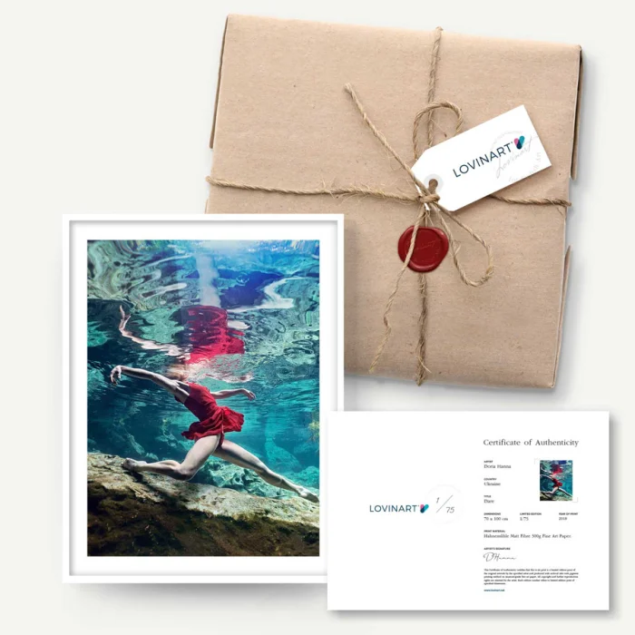 The limited edition artwork is sent to the art buyer together with the signature of the artist on the 'Certificate of Authenticity' indicating which copy of the total editions. In addition, all the printing details, including the printing technique, quality and the fine art paper used, are listed on the certificate.