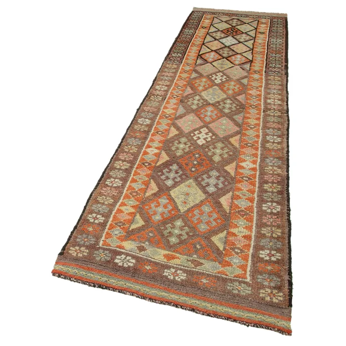 Herki Runner Rug 90 cm width and 340 cm length and the pile height is 5mm, the approximate weight of the rug is 7,65 kg. It’s % 100 hand knotted wool and goat hair rug. It’s made from the natural dye.