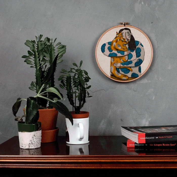 It is produced by stretching fabric on the pulley. Any drawing of Serkan Akyol can be applied.