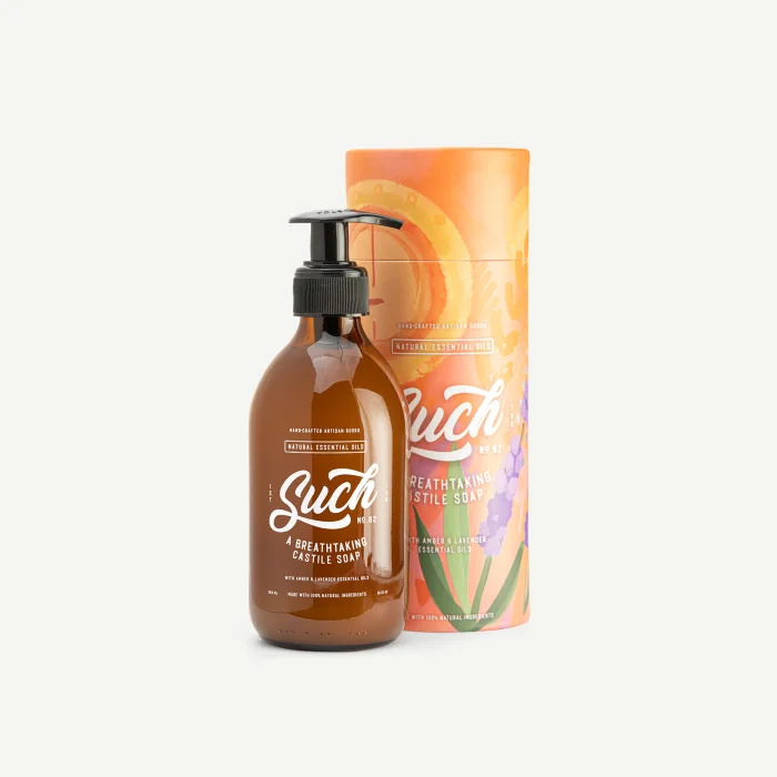 Such a Breathtaking Natural Castil Liquid Soap 300ml Breathtaking Amber & Lavender Olea Europea (Olive) Oil, Cocos Nucifera (Coconut) Oil, Helianthus Annuus (Sunflower) Seed Oil, Ricinus Communis (Castorium) Seed Oil, Potassium Hydroxide (KOH), Aquaglycerin, Amber and Lavender Essential Oils