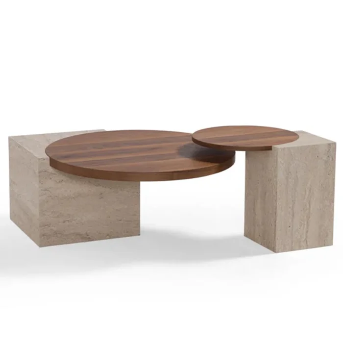 Designed to enrich your home decoration and add elegance to your living space, Togg offers a special coffee table made with walnut veneer and travertine coating materials. This modular coffee table combines aesthetic details, functionality and durability to add a special touch to your home. SIZE: Width: 100 cm, Depth: 80 cm, Height: 38 cm  MATERIAL : Travertine veneer - Walnut veneer  DELIVERY : Product delivery time is 5 weeks. This date may vary for special production products.