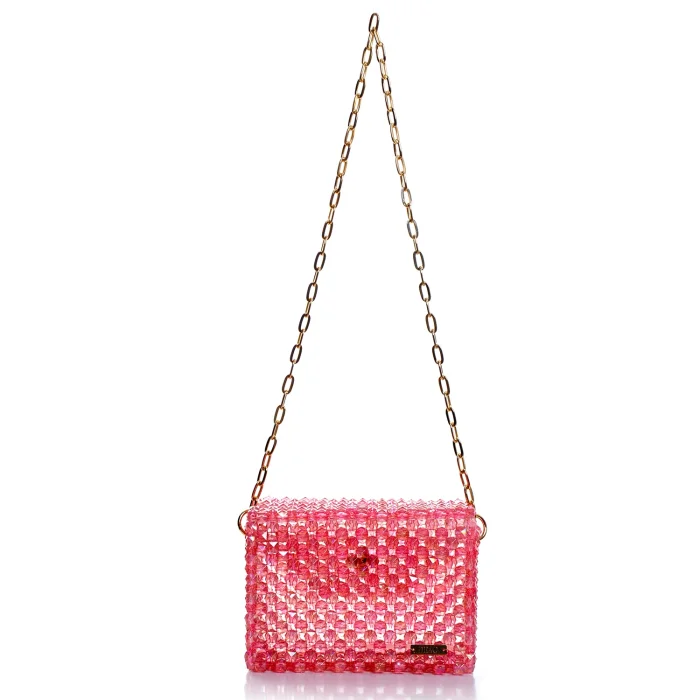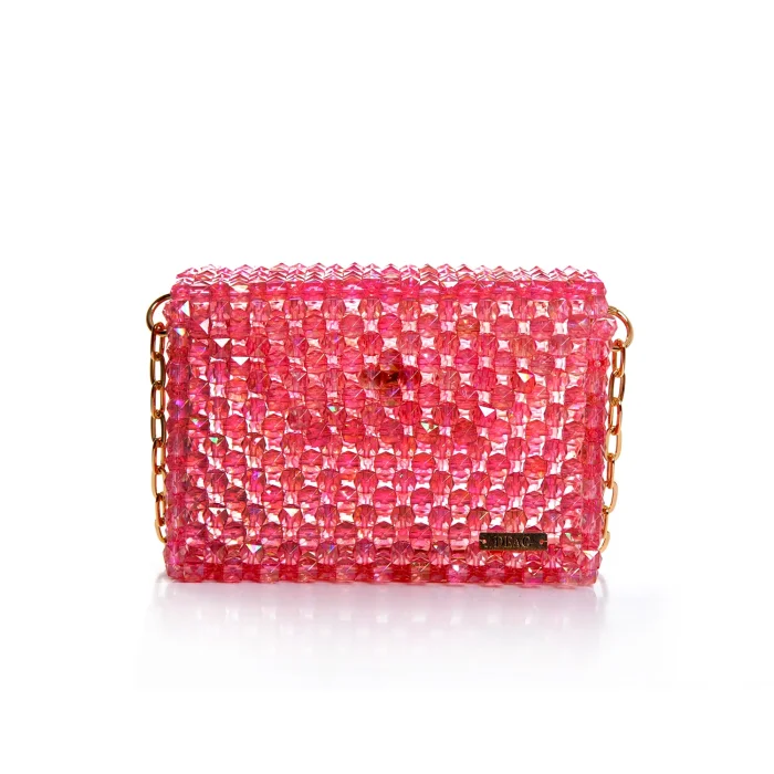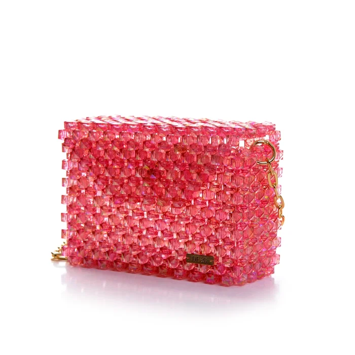 Handmade beaded handbag Shaped pink beaded handbag. Acrylic chain shoulder hanger Height x Width x Depth 22 x 15 x 9 cm Pink MATERIAL 100% acrylich LONG HANGER 100% iron
