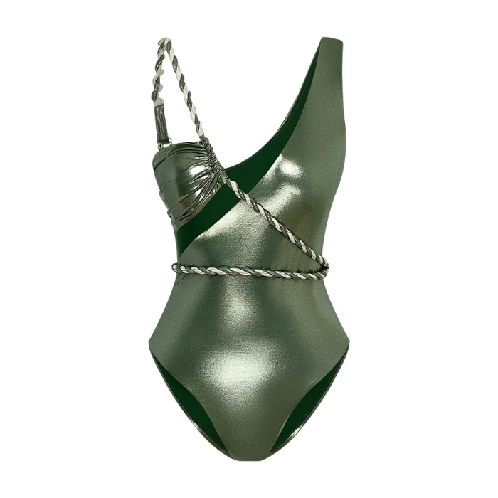 Product: Celestial Emerald Gleam Twisted Asymmetric Swimsuit