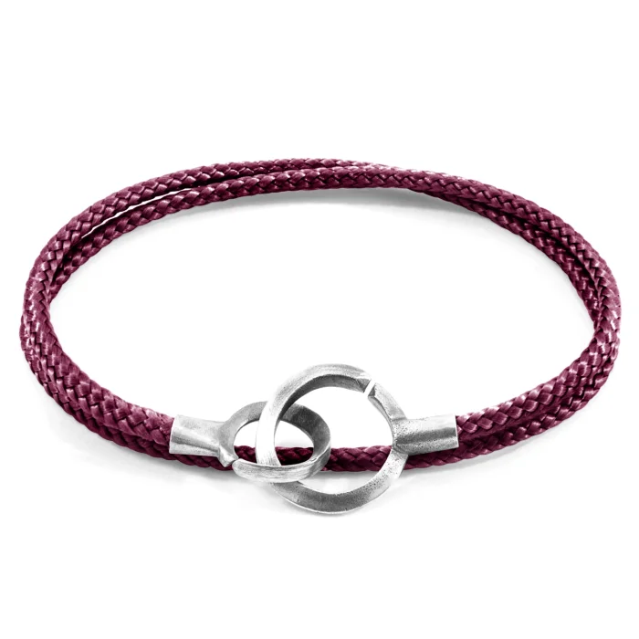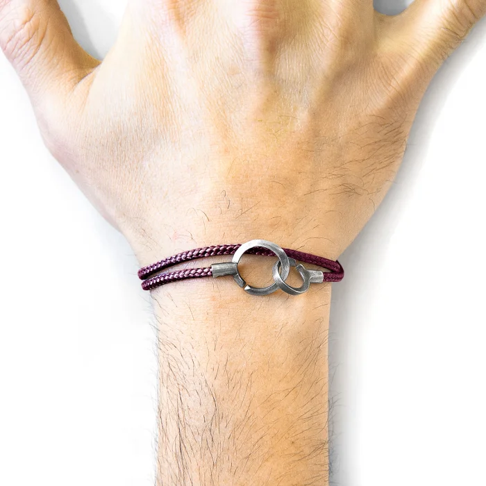 The Aubergine Purple Montrose Silver and Rope Bracelet was both designed and skilfully handcrafted completely in Great Britain. Combining British craft manufacturing with a discerning modern-minimalist style, this ANCHOR & CREW bracelet features: