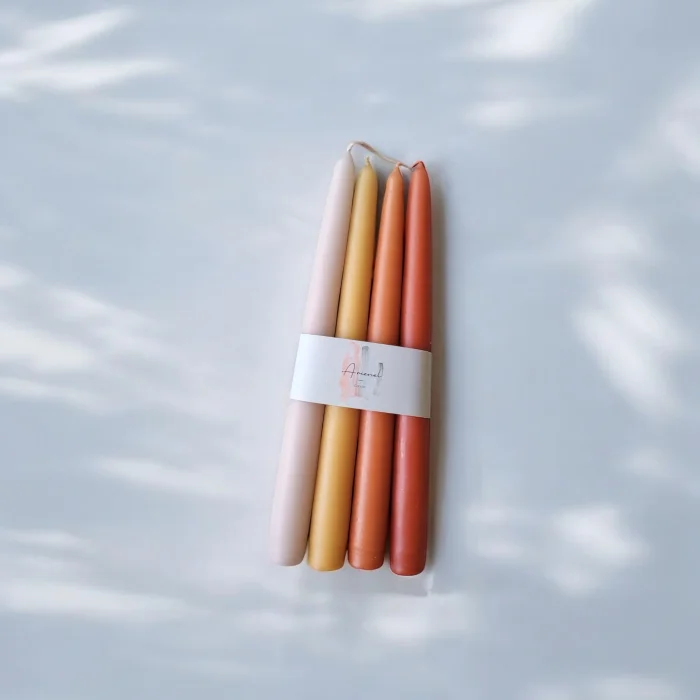 Candlestick Candlestick | Shades Of Fall | Set of 4 Our candlestick candles are compatible with all candlesticks and candle holders in our store. Dimensions: 25×2 cm. It is obtained from paraffin. REACH (EU), RAL (DE) It is odorless. Store in environments below 30 degrees.