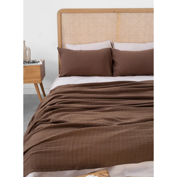 Muslin Bedspread is an elegant option that will gently wrap your beds in spring and summer. Woven with fine cotton threads, this cover keeps you cool and increases comfort in hot weather thanks to its breathable structure. It is also an excellent choice for achieving a layered look, adding an elegant and spacious touch to your bedroom. The comfortable touch provided by the 100% cotton muslin fabric offers a peaceful sleep experience every night.