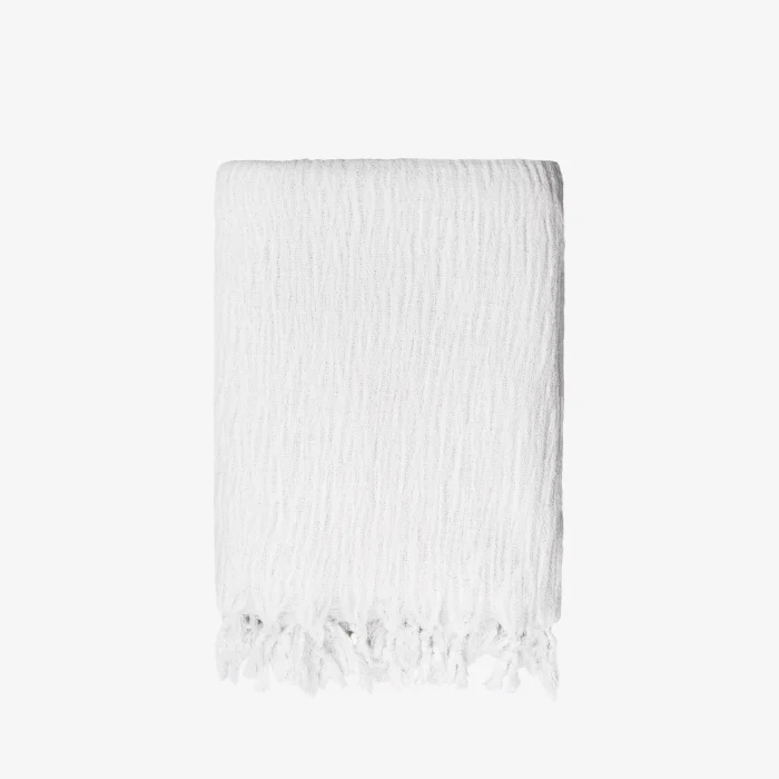 Wrinclet Throw White is a sofa shawl that has a unique appearance with its elegant weaving and special washing technique, creating a different effect with each use. It is made with a combination of European linen and heavy linen yarns, which adds both elegance and durability to the product. It can be easily used in any area with its color; It stands out as an elegant detail on your sofa and also functions as a stylish layer in the bedroom. The natural texture of linen provides both visual and physical comfort during use, creating a piece that can be used comfortably in all seasons.