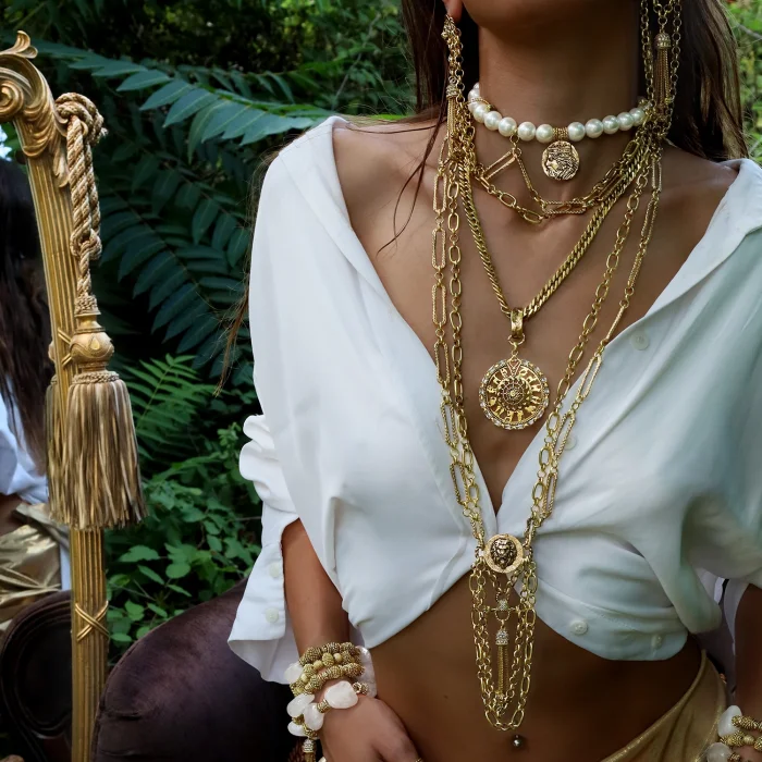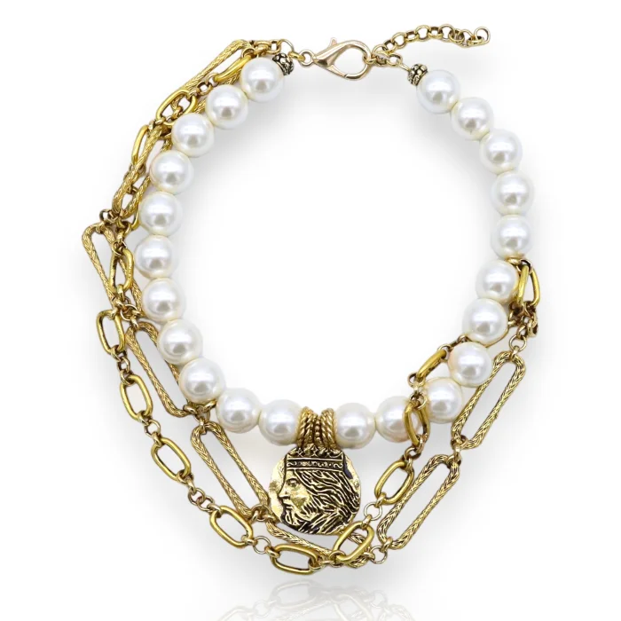 Production Type: Handmade Necklace Material: 22 carat gold-plated brass, pearl Length: 35 cm + 5 cm extension chain Weight : 91 gr