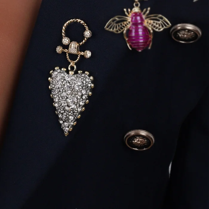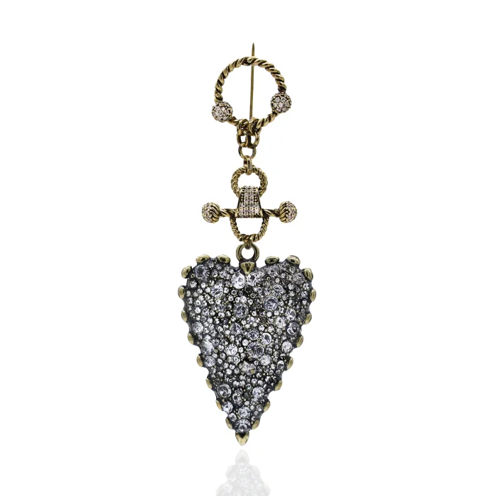 Production Type: Handmade Material: 22K gold-plated brass, heart with crystal stones Length : 10 cm Weight : 27 gr