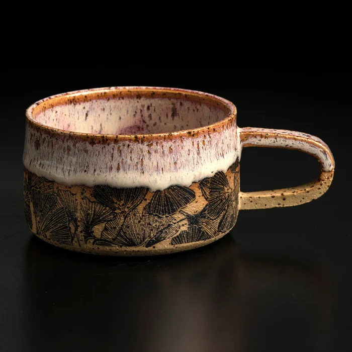 Stoneware is drawn from clay on a potter's lathe. The patterns on it are decal prints and brought from America.