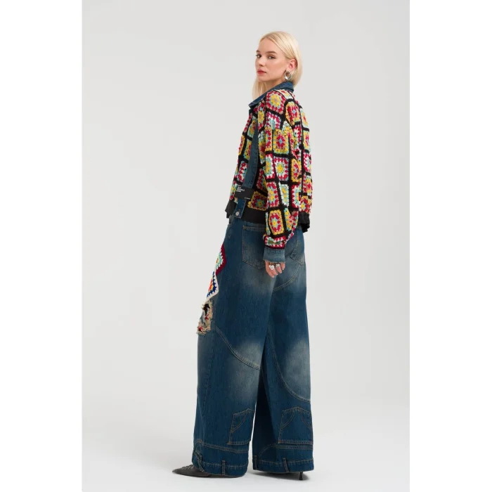Designed for those who love unique styles, this women's denim jacket comes in XS, S, M, and L sizes. Featuring boho-inspired crochet details on the sleeves, this jacket is both stylish and comfortable, adding a distinctive touch to your everyday outfits.