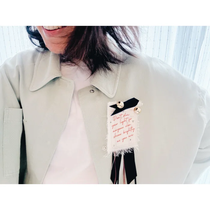 All of our brooches are handmade using a variety of materials, mainly textiles. Since they're made by hand, each one might look a little different from the photo — that's part of their charm! We make every piece just for you after you place your order. The ones in the pictures are just samples.