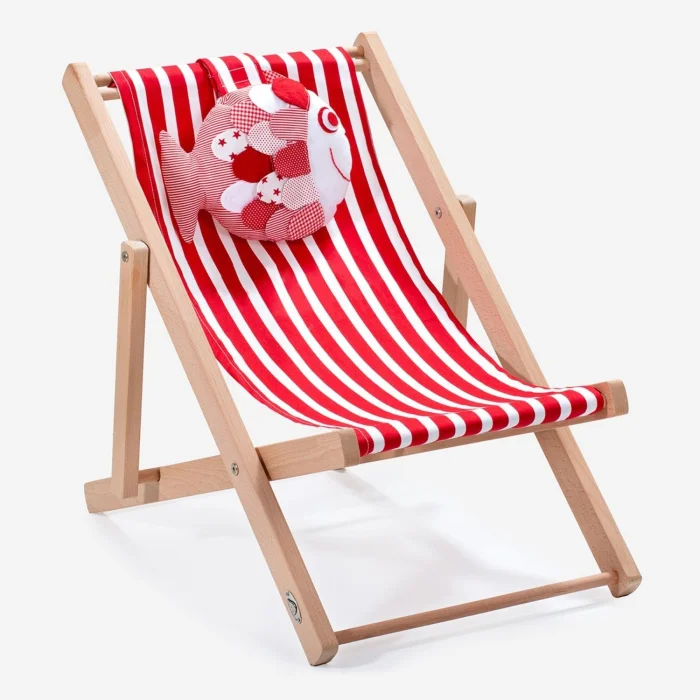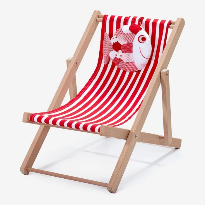Two-stage solid wood fun natural child lounge seat. A fish pillow and a grey-and-white striped cushion are included. You can use our children's chair in both ways, reclining backwards and upright in a sitting position. Open-Close & Disassembled-Mounted. It is an easy-to-carry, practical sunbed type long chair. Mobile furniture, I go everywhere with you. I'm with you at home, at school, on vacation. Natural solid wood child seat frame size, 42.5*64.5*h:59cm. Actual weight 2,7Kgr. Parcel weight 3,8Kgr.Fiber filled Fish pillow, grey and white sequined, cotton thread hand embroidery felt eye. Fish pillow toy size, Width 27cm. Height 24cm. Depth 10cm. and 110gr. weight. Child seat cushion grey/white striped - interior upholstery fabric details: Lenght 91,5* Width 32cm./111gr.Product: Natural Wooden Child Seat