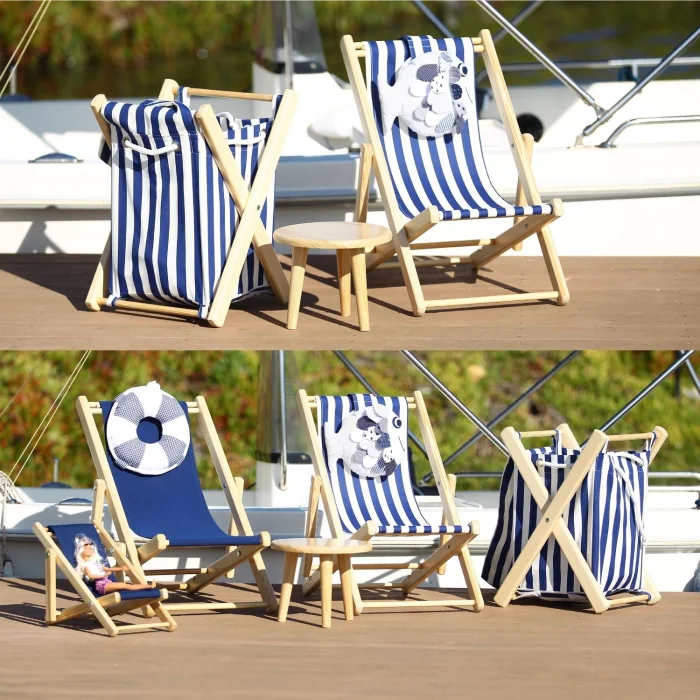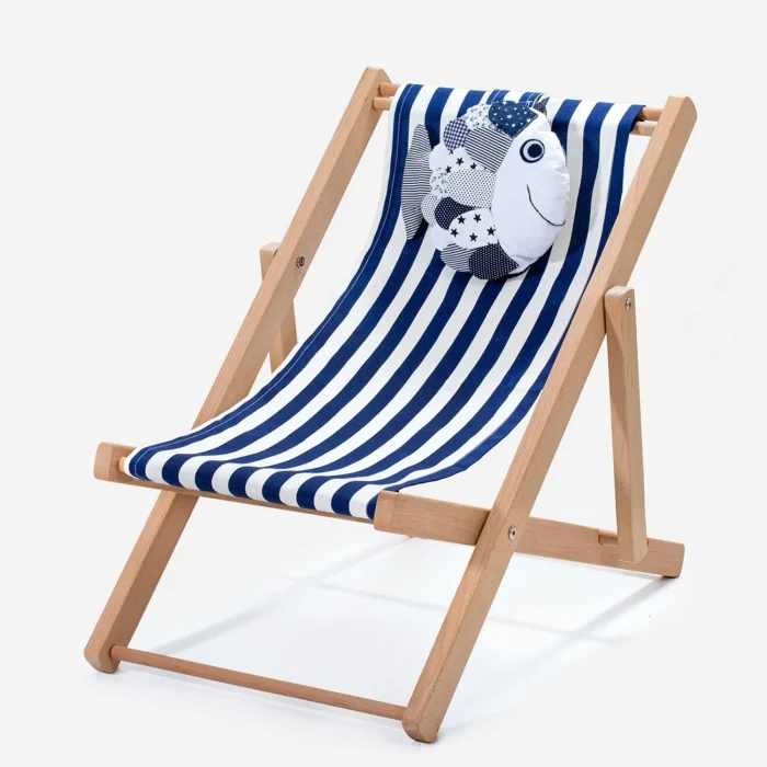 Two-stage solid wood fun natural child lounge seat. A fish pillow and a grey-and-white striped cushion are included. You can use our children's chair in both ways, reclining backwards and upright in a sitting position. Open-Close & Disassembled-Mounted. It is an easy-to-carry, practical sunbed type long chair. Mobile furniture, I go everywhere with you. I'm with you at home, at school, on vacation. Natural solid wood child seat frame size, 42.5*64.5*h:59cm. Actual weight 2,7Kgr. Parcel weight 3,8Kgr.Fiber filled Fish pillow, grey and white sequined, cotton thread hand embroidery felt eye. Fish pillow toy size, Width 27cm. Height 24cm. Depth 10cm. and 110gr. weight. Child seat cushion grey/white striped - interior upholstery fabric details: Lenght 91,5* Width 32cm./111gr.Product: Natural Wooden Child Seat