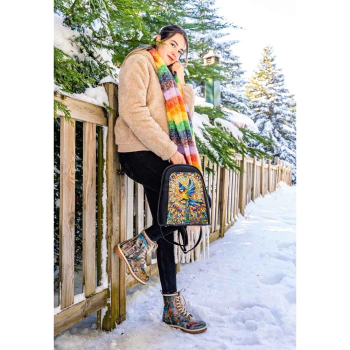 Product: Women Vegan Leather Multicolor Long Boots - Mosaical Design