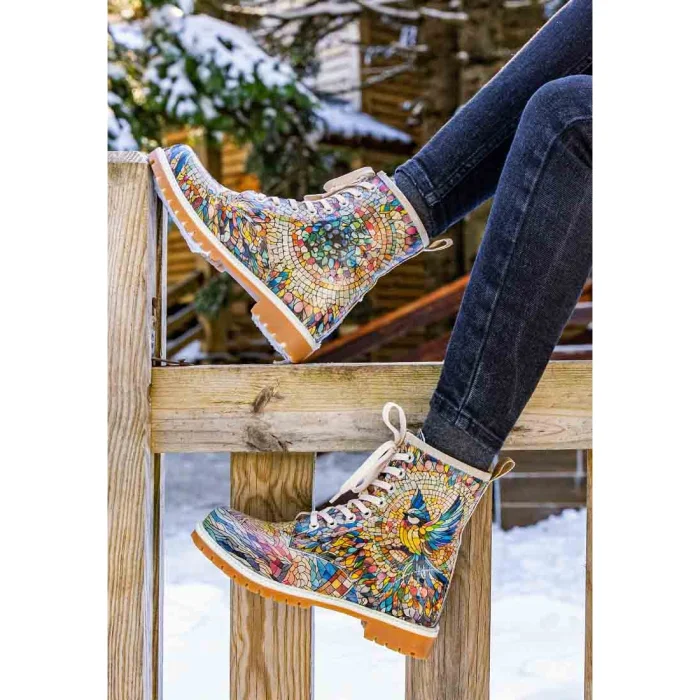 Product: Women Vegan Leather Multicolor Long Boots - Mosaical Design