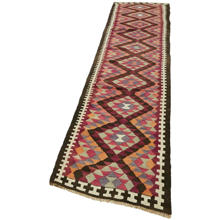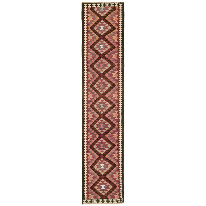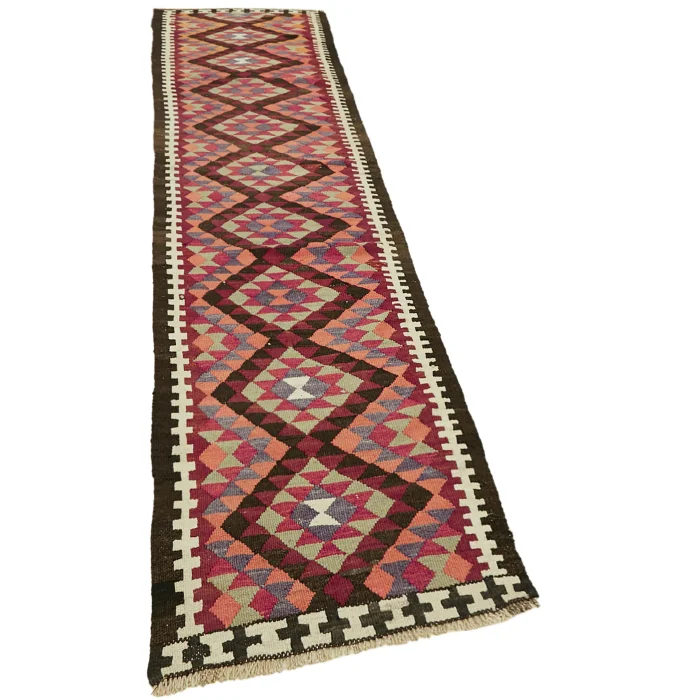 Herki Rug Runner is 88 cm wide, 407 cm long, 5 mm thick, and weighs an average of 9 kg. It is made of hand-spun 100% Organic Wool and Cotton. Root dye obtained naturally is used.