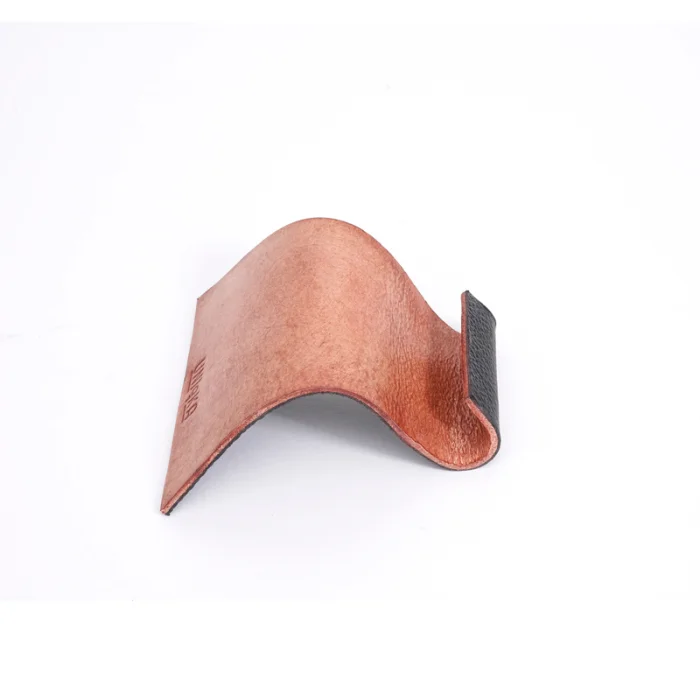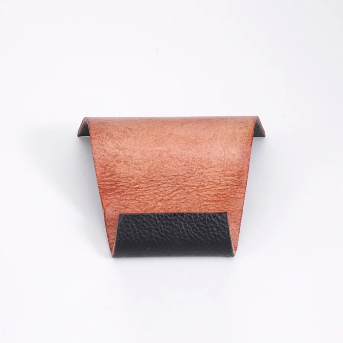 Hand formed with two different kinds of leather.
