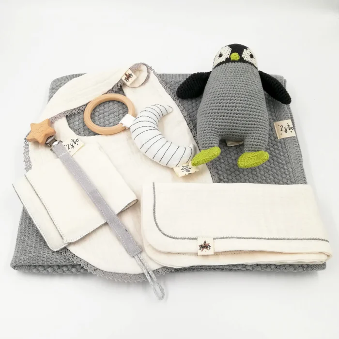 Made of 100% Organic, GOTS certified 4 layers of mueslin, this set consists of 7 pieces. It is a product that is friendly to baby skin with its breathable soft structure.This set, which will come to you in the form of a carefully prepared gift package, can be bought for your own baby or as a gift for the baby of your loved ones.
