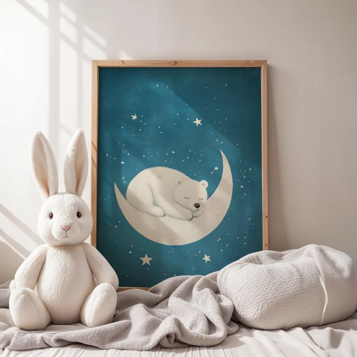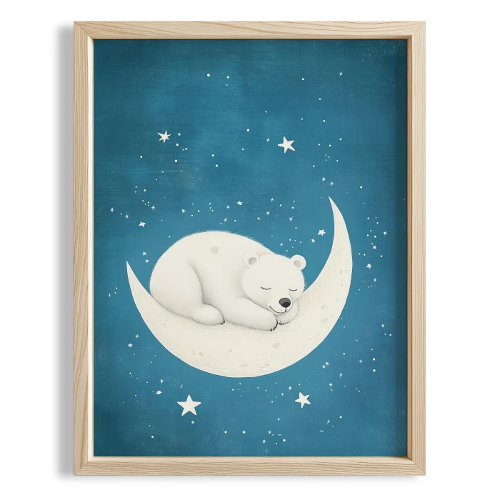 Ay Ve Yıldızlar Ile Uyuyan Bear Children's Room Wooden Framed Wall Art