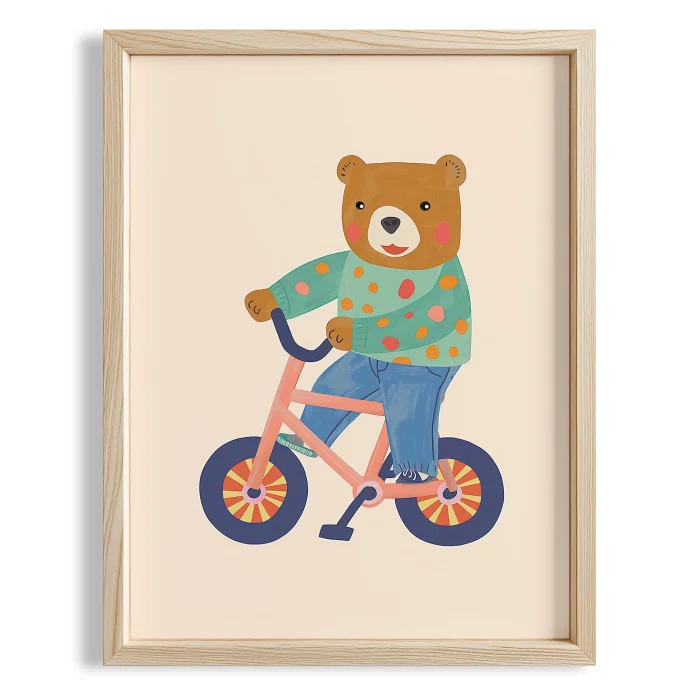 Product: Bisikletli Bear Eclectic Style Kids' Room Decor Wooden Framed Wall Art
