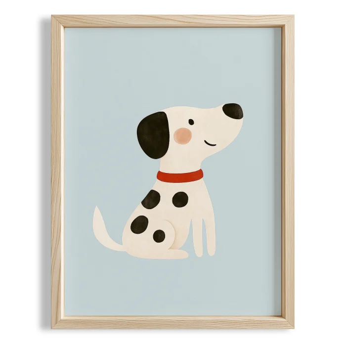 Cute Dalmaçyalı Dog With Blue Background Boys' Room Wooden Wall Art