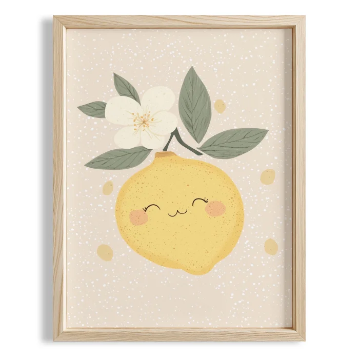 Product: Floral And Smiling Lemon Kids Room Wooden Wall Art