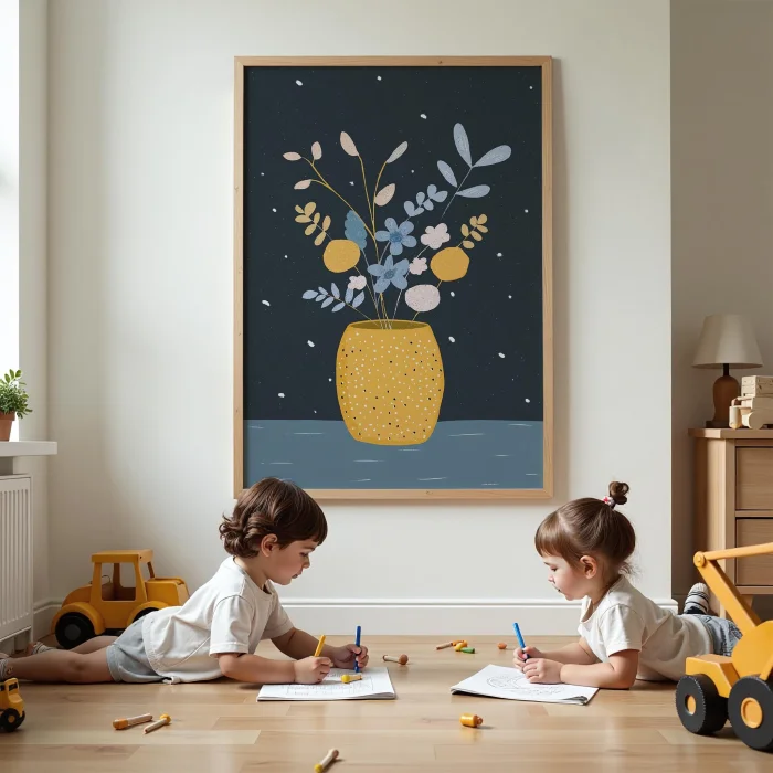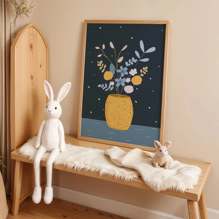 Product: Flower Bouquet In Vase Illustration Kids Room Wooden Wall Art